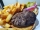Barley-Chick Pea-Mushrooms Patty, Goat Cheese, Caramelized Onions, with Fries.