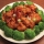 Chunks chicken lightly fried with hot pepper sauce. This plate was devised by a private chef of General Tso who was a famous general in Szechuan army. With white rice. Spicy.