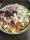 Combination of zucchini, red peppers, onions, lettuce and tomatoes with tzatziki.