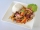 Peruvian style paella and seafood simmered in rice topped with salsa criolla.