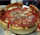 Green and red peppers, ricotta cheese and mozzarella cheese, ham, mushrooms, pepperoni, bacon, sausage, ground beef, tomatoes, red onions, black olives and tomato sauce.