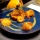 Roasted eggplants stuffed with walnut garlic paste, blue fenugreek, coriander, garlic, burberries, pomegranate reduction (v, gf)